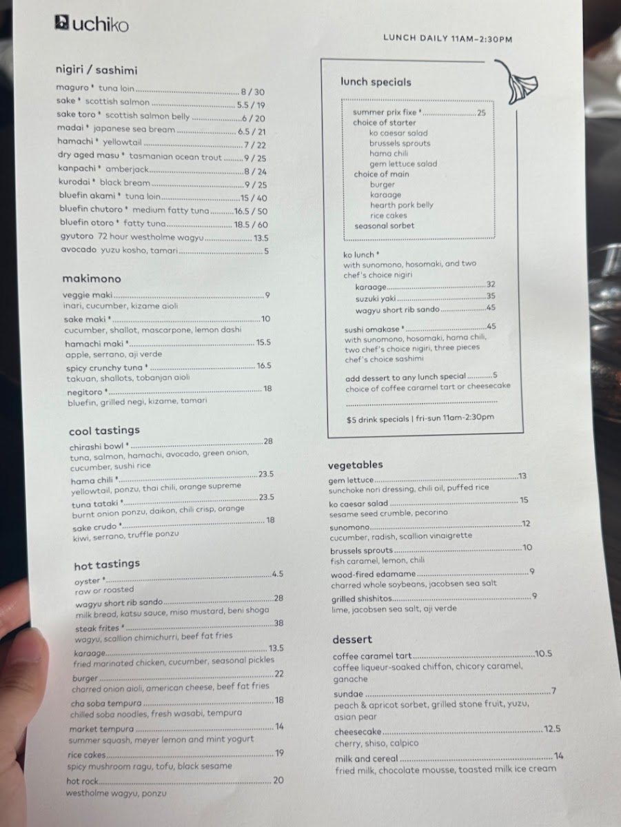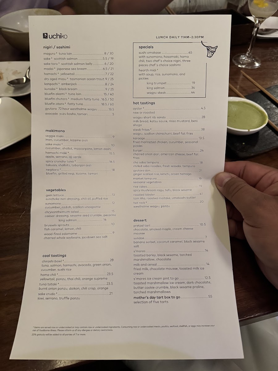 For those seeking a sweeter note to end their meal, treats like fried ice cream or coconut lychee sorbet provide a gentle finish that fits the calm, sophisticated atmosphere. Whether dining in or opting for sushi takeaway, Uchiko’s menu encourages savoring each bite in a setting designed for quiet enjoyment and connection.